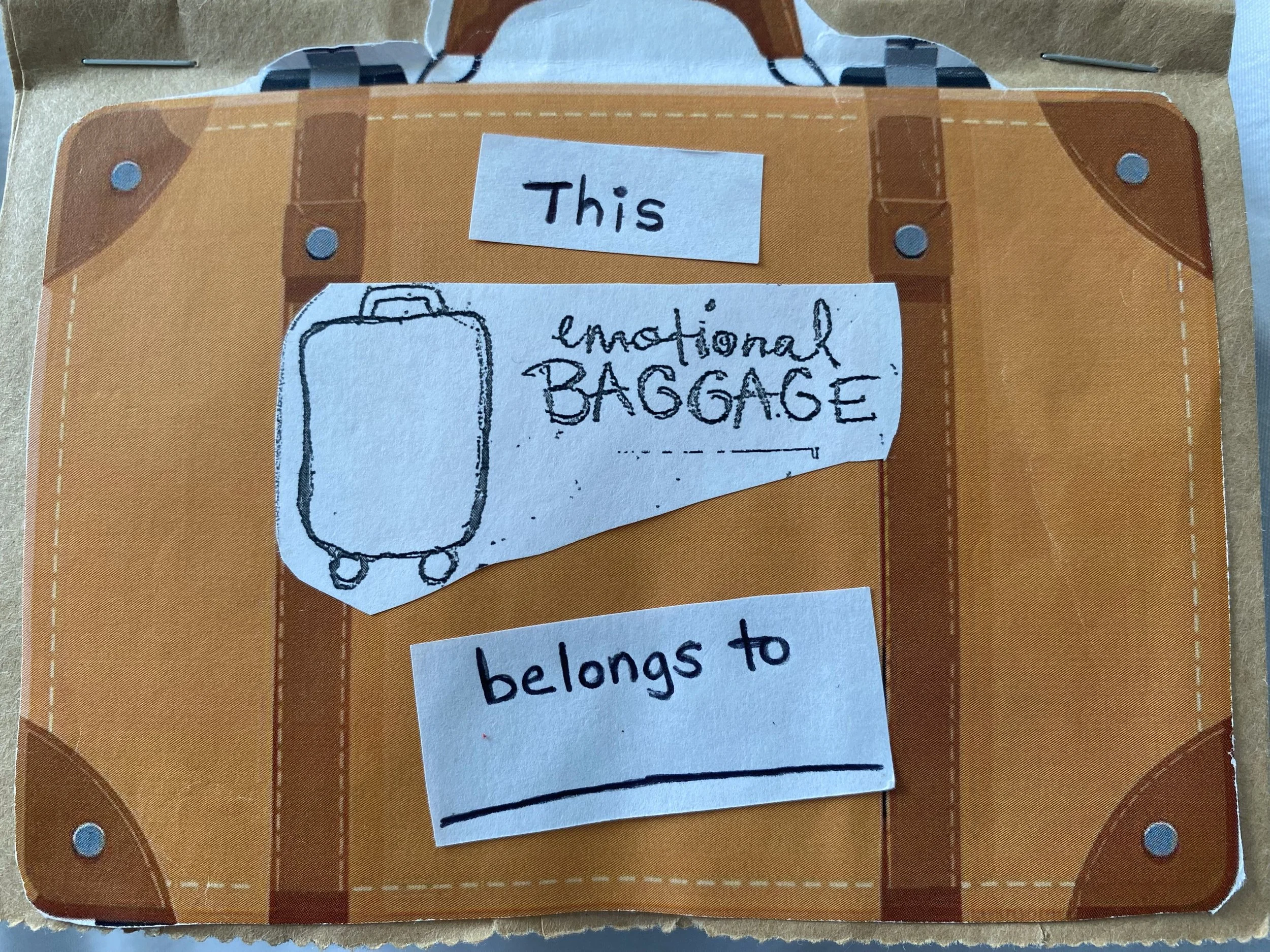I don’t remember when I bought Eden Sher/Julia Wertz’s book The Emotionary; I just know it was one of the (too many) books that made the move from Indy to Charlotte. And one day while I was scrolling Pinterest, this paper bag “scrapbook” pops up, and I suddenly remember Jerry Springer’s old show. Not the self-titled, the one with the suitcases: Baggage.